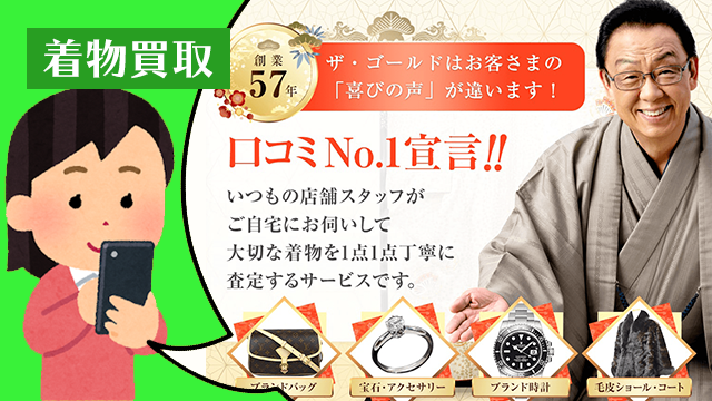 「ザ・ゴールド」は着物買取をはじめ、宝石や貴金属、ブランドバッグ・ブランド腕時計など様々な買取品目を取り扱っている買取業者です。